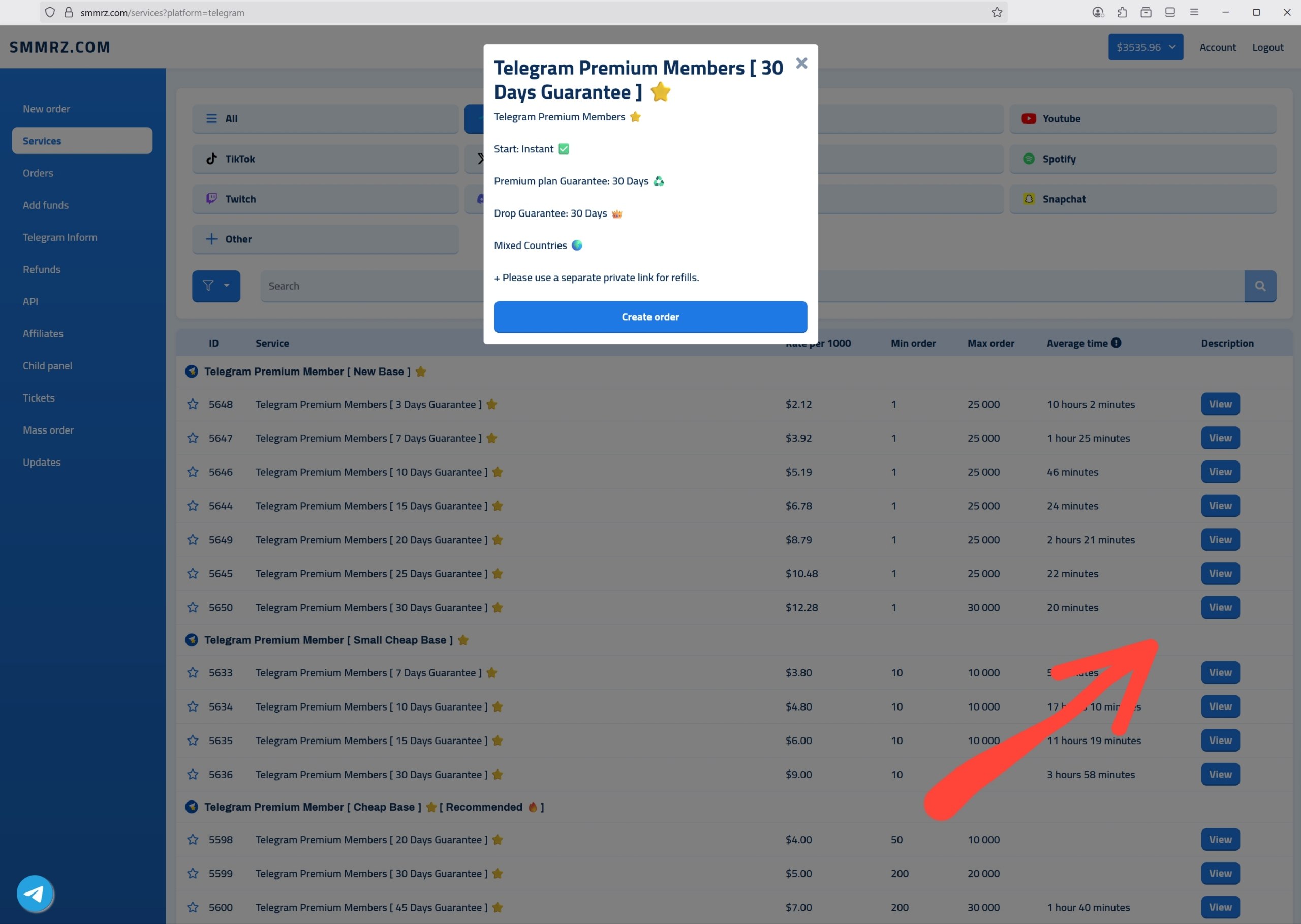 We will guide you step by step, with both images and text, so that you can easily order your desired service from smmrz.com.